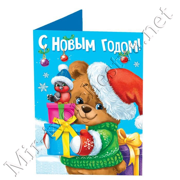 Гравюра 13х17см, для малышей, Весёлый мишка, Золото