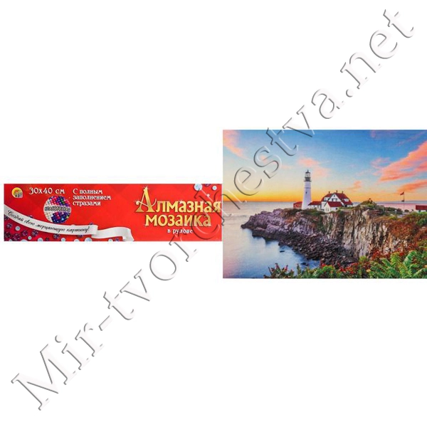 Алмазная мозаика с полным заполнением, без подрамника, 30x40см «Маяк на закате»