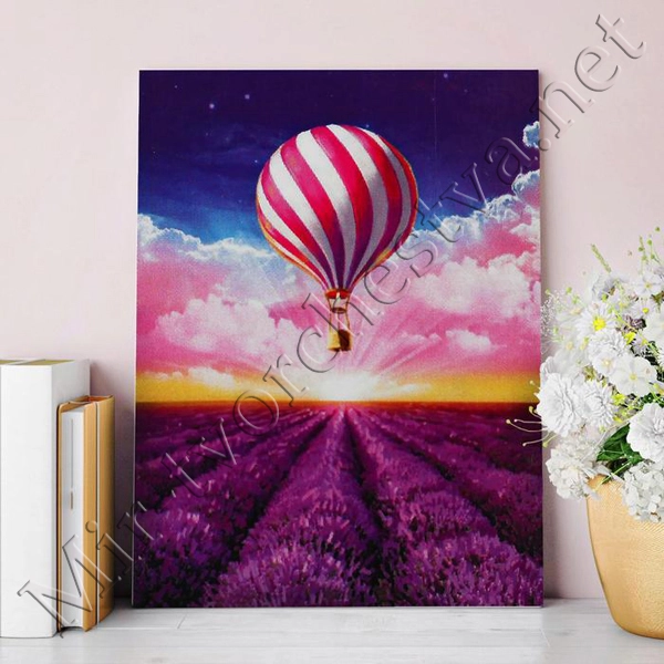 Алмазная мозаика с частичным заполнением «Лавандовые поля» 30x40см, холст, ёмкость