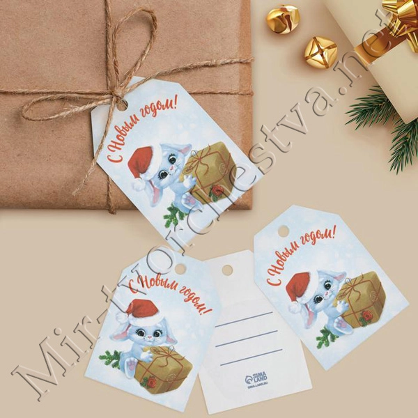 Открытка-шильдик на подарок «Зайчик», картон 5x7см (набор 5шт.)