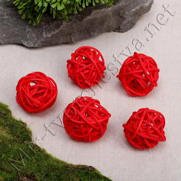 Шар декоративный из лианы, размер 1 шт. — 3 см, цвет Красный