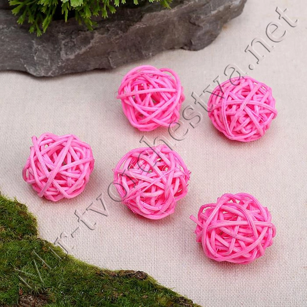 Шар декоративный из лианы, размер 1 шт. — 3 см, цвет Розовый