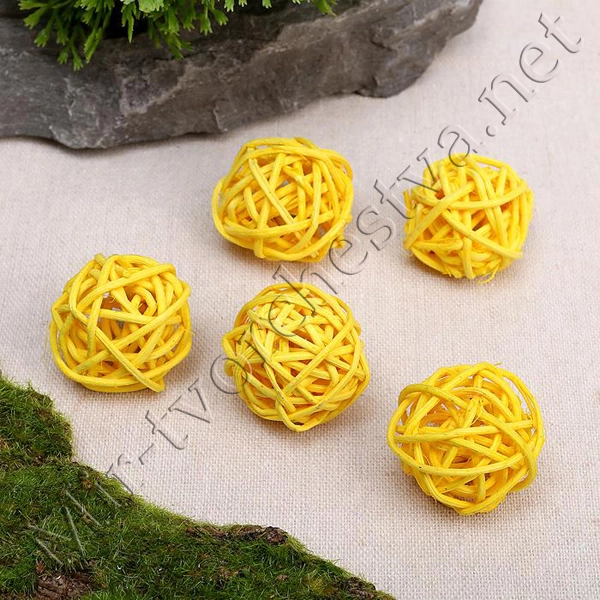 Шар декоративный из лианы, размер 1 шт. — 3 см, цвет Жёлтый