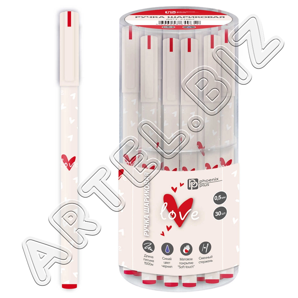 Ручка шар. СЕРДЕЧКО НА БЕЖЕВОМ СИНЯЯ 0,5 софт-тач,тубус арт.71667