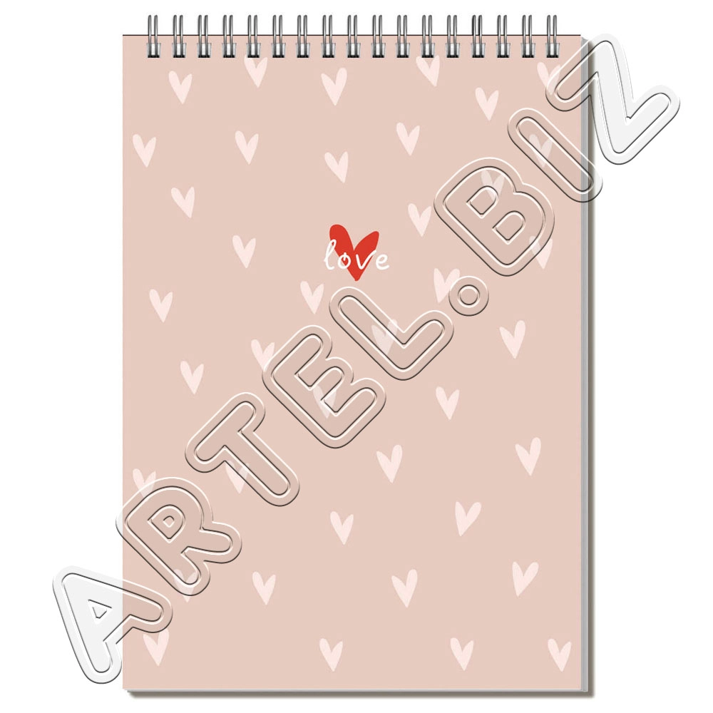 Блокнот А5 гребень 60л СЕРДЕЧКИ НА БЕЖЕВОМ клетка арт.72051