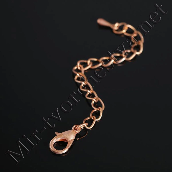 Замок-карабин (набор 5 шт), 15*8мм, с удлинительной цепочкой 7,5см, цвет меди