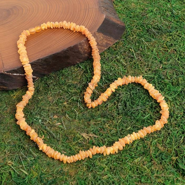 Бусы "Янтарь" лечебка, галька мелкая, цвет светлый медовый, 55см