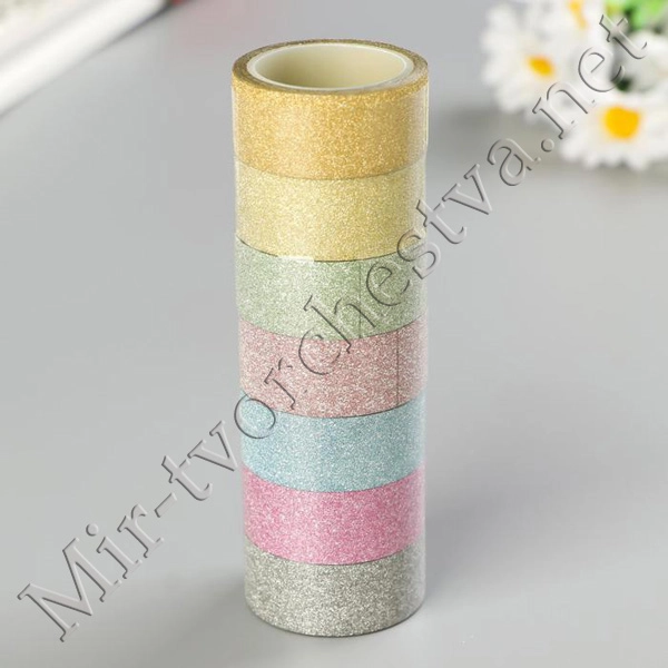 Клейкие ленты полимерные для декора с блестками "ПАСТЕЛЬ", 15 ммx3 м (набор 7 шт) 5132691