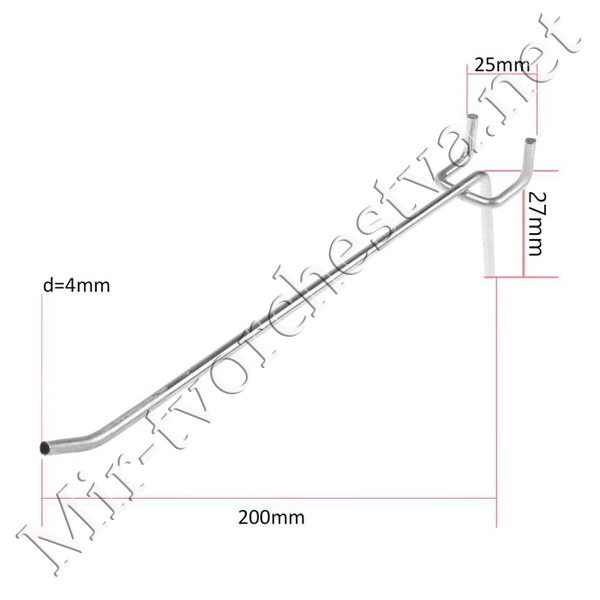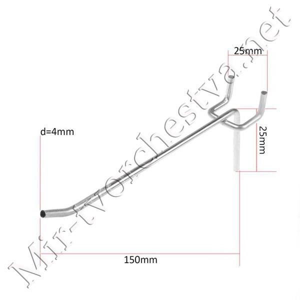 Крючок одинарный для металлической перфорированной панели, d=4 мм, L=25 см, шаг 25 мм