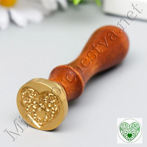 Печать для сургуча с деревянной ручкой "Сердце с завитками" 9х2,5х2,5 см 5278959