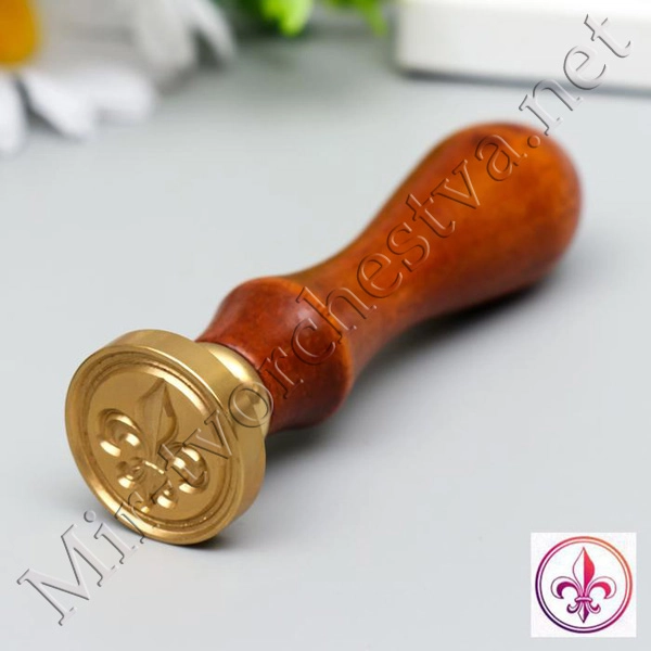 Печать для сургуча с деревянной ручкой "Геральдическая лилия" 9х2,5х2,5 см 5278990