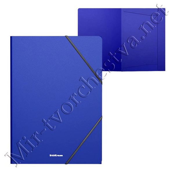 Папка на резинке A4, 400 мкм, ErichKrause Matt Classic, корешок 5 мм, до 300 листов, тиснение "песок", синяя