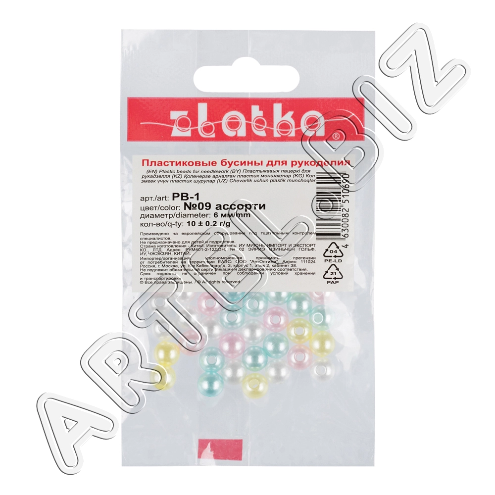 Бусина "Zlatka" MIX пластик PB-1 6 мм 10x10 г №09 ассорти