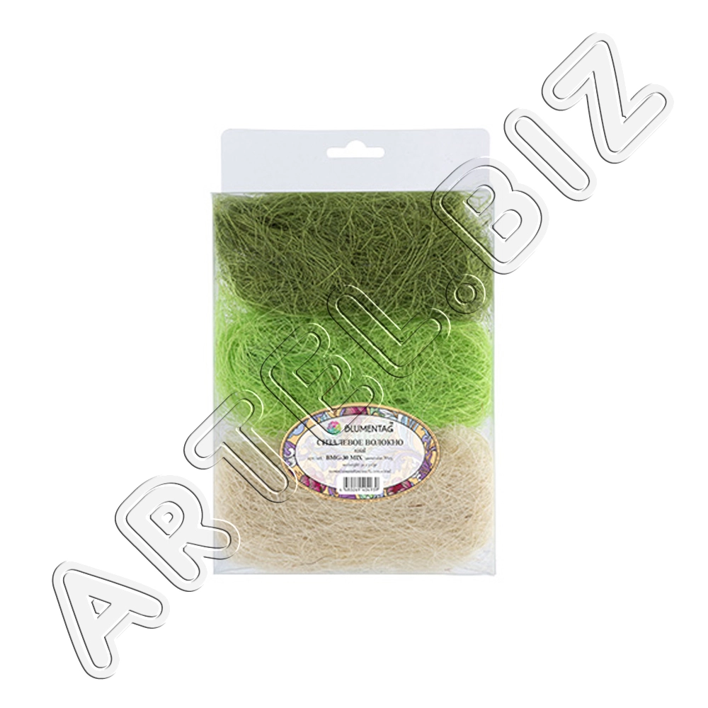 Blumentag BMG-30 MIX Сизалевое волокно 30 г 05 Белый/св. зеленый/т. Зеленый