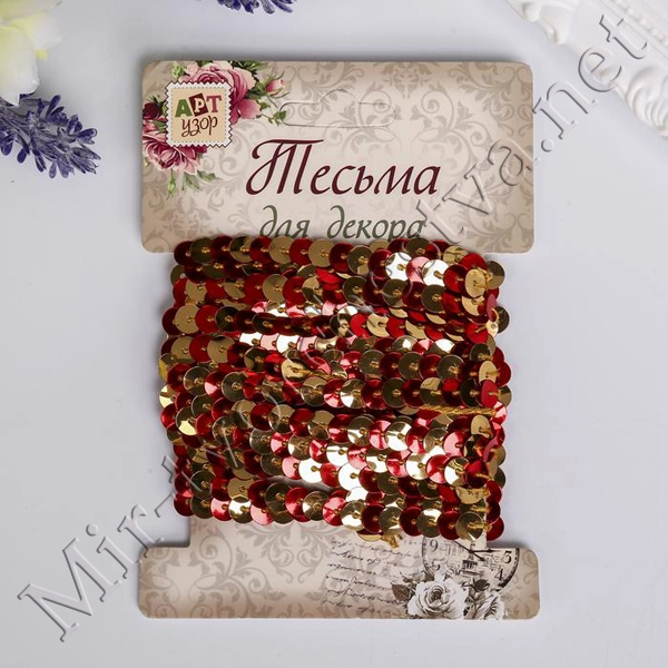 Нить из пайеток голографическая "Золотая и красная" намотка 3 метра 4146036
