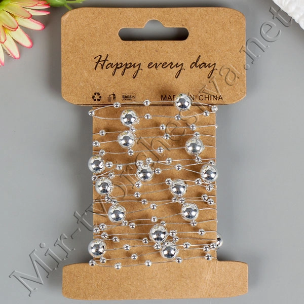 Нить для творчества пластик "Шарики" серебро намотка 2 метра 11,5х7,5 см 4146619