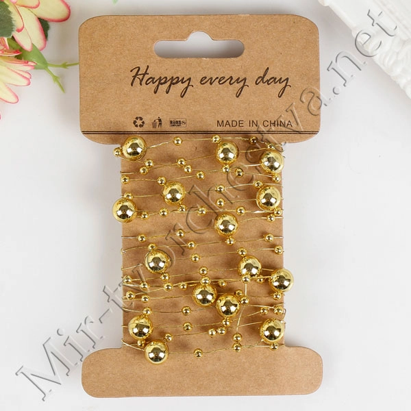 Нить для творчества пластик "Шарики" золото намотка 2 метра 11,5х7,5 см 4146620