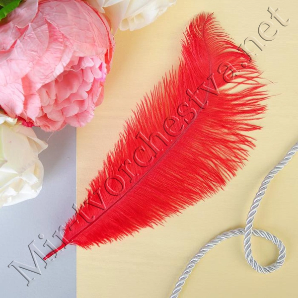 Лента перьев для декора, размер 1 шт 50*6 цвет красно-черный