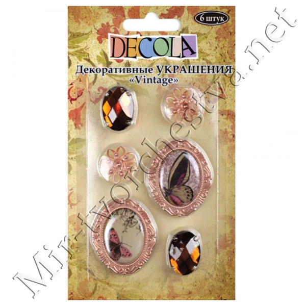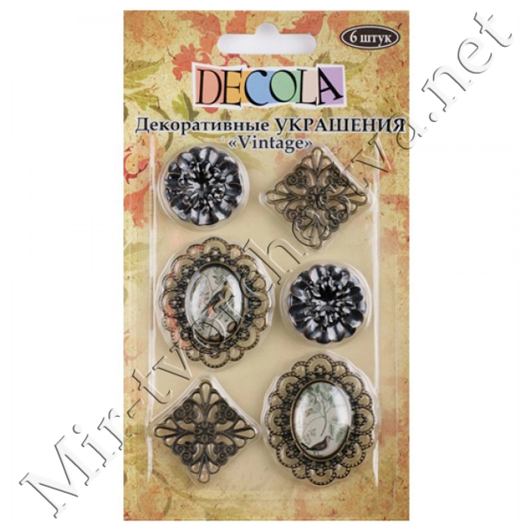 Украшения декоративные для скрапбукинга "Vintage", 6шт., №5344, Decola