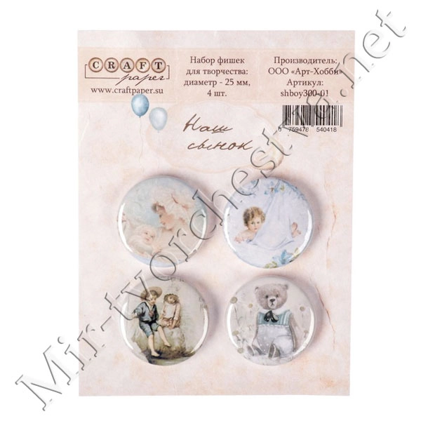 Фишки для скрапбукинга "Наш сынок" набор 4 шт, d=2,5 см 3695928