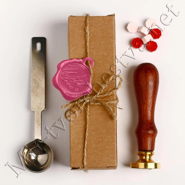 Набор для сургучной печати, Сургучная печать «Конверт» 12.5x4x4см + ложка для плавления сургуча + сургуч звёздочки (2цв.)