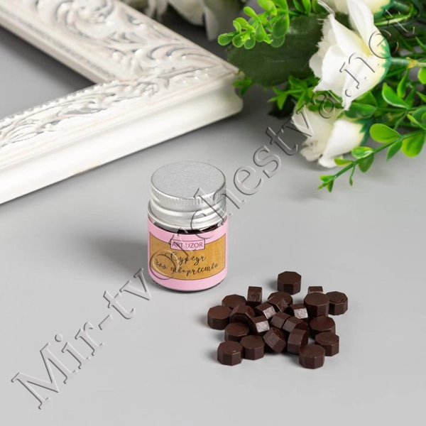 Сургуч в гранулах в баночке "Восьмигранник", (9г) 4.5x3x3см, цвет Горький шоколад, Арт Узор