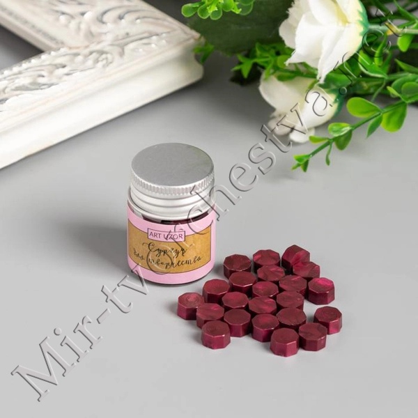 Сургуч в гранулах в баночке "Восьмигранник", (9г) 4.5x3x3см, цвет Ежевичный, Арт Узор