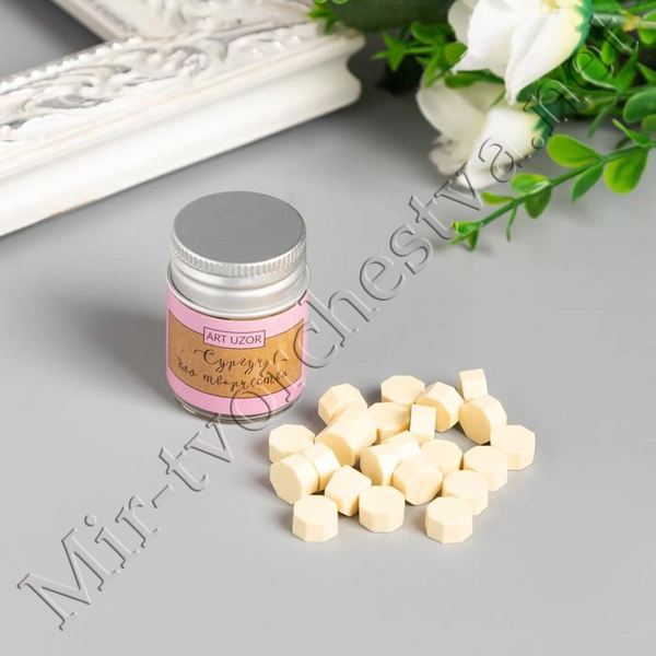 Сургуч в гранулах в баночке "Восьмигранник", (9г) 4.5x3x3см, цвет Льняной, Арт Узор