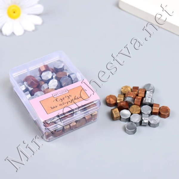 Сургуч в гранулах в коробочке "Восьмигранник", (35г) 2.4x5.5x7см, цвет Золото и Серебро, Арт Узор