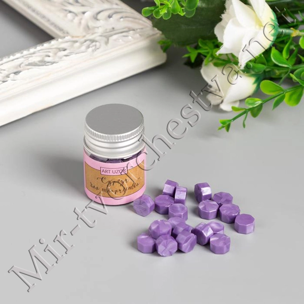 Сургуч в гранулах в баночке "Восьмигранник", (9г) 4.5x3x3см, цвет Светло-сиреневый, Арт Узор