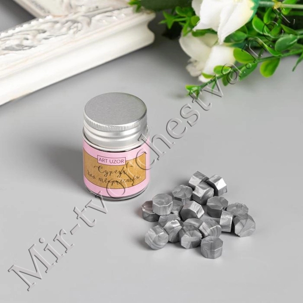 Сургуч в гранулах в баночке "Восьмигранник", (9г) 4.5x3x3см, цвет Серебро, Арт Узор