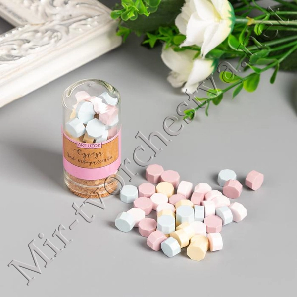 Сургуч в гранулах в баночке "Восьмигранник", (15г) 4.5x3x3см, цвет Пастельные цвета, Арт Узор