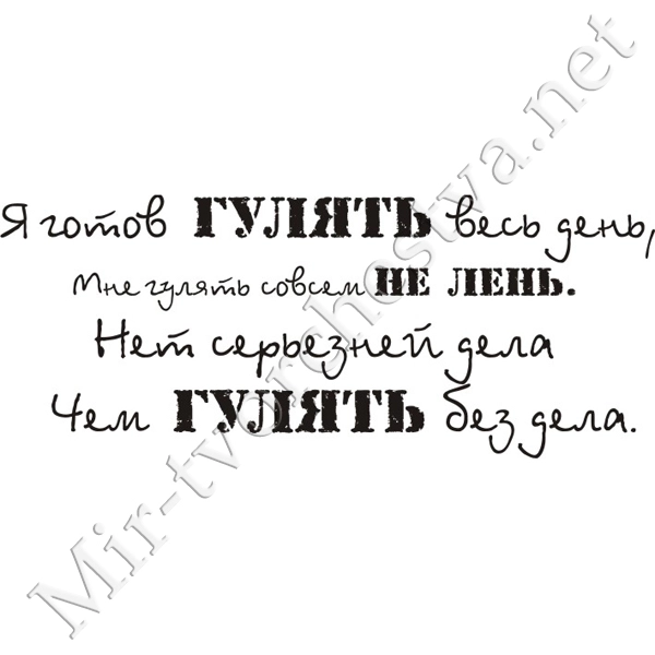 Силиконовый штамп, Я готов гулять весь день, … 6х2,4