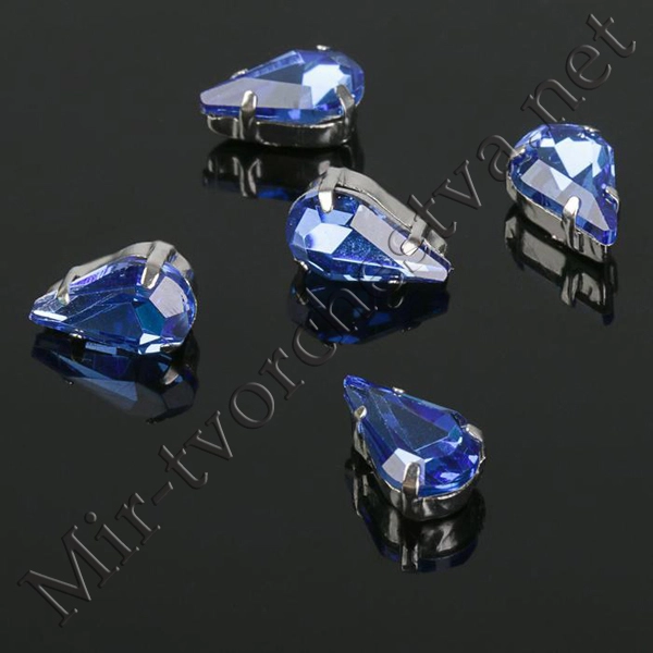 Стразы в цапах (набор 5шт.), 6x10мм, цвет Синий в Серебре
