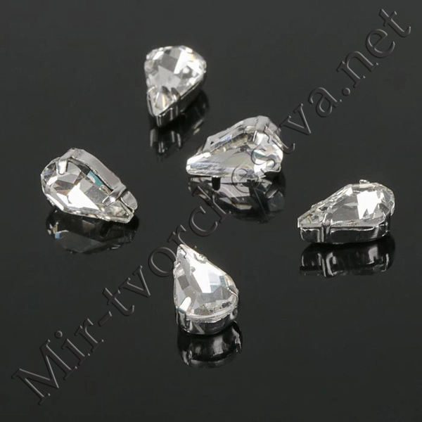 Стразы в цапах (набор 5шт.), 6x10мм, цвет Белый в Серебре