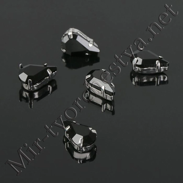 Стразы в цапах (набор 5шт.), 6x10мм, цвет Черный в Серебре