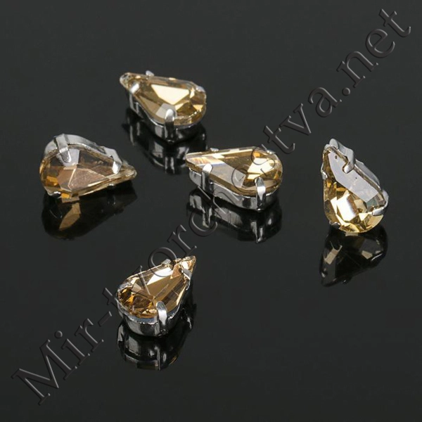 Стразы в цапах (набор 5шт.), 6x10мм, цвет Шампань в Серебре