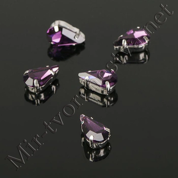 Стразы в цапах (набор 5шт.), 6x10мм, цвет Фиолетовый в Серебре