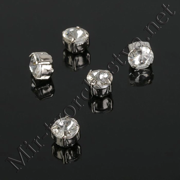 Стразы в цапах без отверстий (набор 5шт.), 6x6мм, цвет Белый в Серебре
