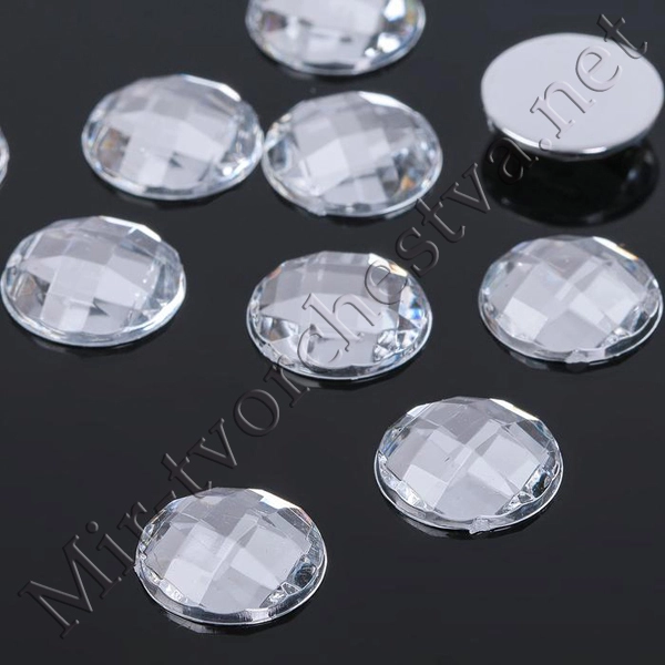 Стразы плоские круг, 14мм, (набор 10шт.), цвет Белый