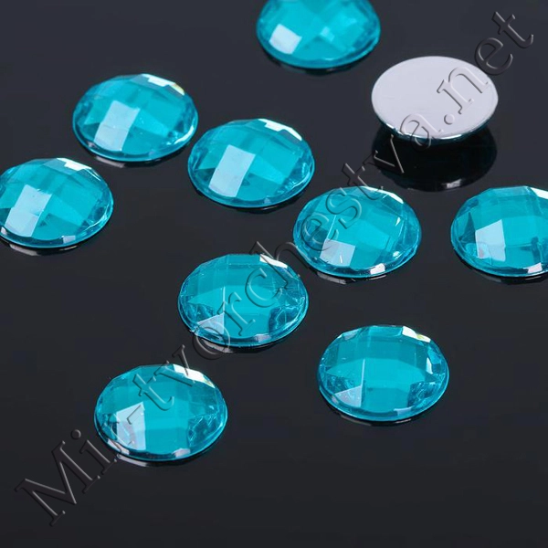 Стразы плоские круг, 14мм, (набор 10шт.), цвет Голубой