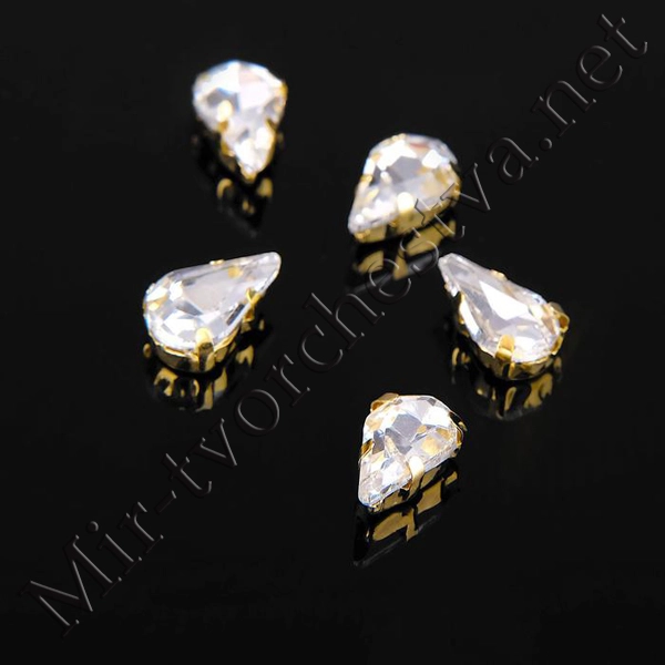 Стразы в цапах (набор 5шт.), 6x10мм, цвет Белый в Золоте