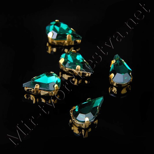 Стразы в цапах (набор 5шт.), 6x10мм, цвет Изумрудный в Золоте