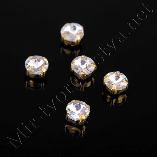 Стразы в цапах (набор 5шт.), 6x6мм, цвет Белый в Золоте