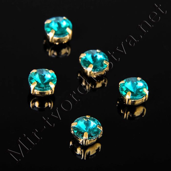 Стразы в цапах (набор 5шт.), 6x6мм, цвет Голубой в Золоте