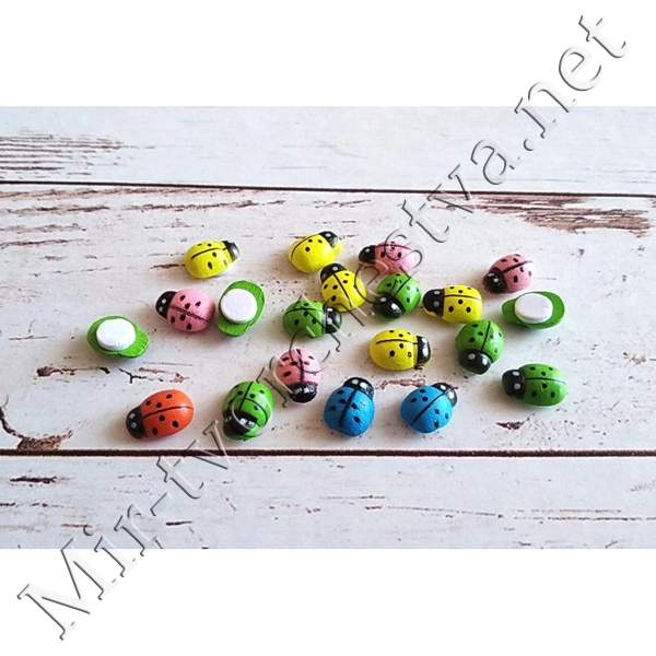 Божьи коровки на клеевой основе 0,8х1,1см, 20шт, цветные