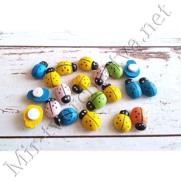 Набор декора для творчества дерево "Божьи коровки", (набор 15шт.) 1.3x2.5см