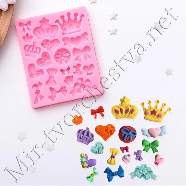 Молд силиконовый, 9,1х8,5х1 см "Банты и короны", розовый 2818792