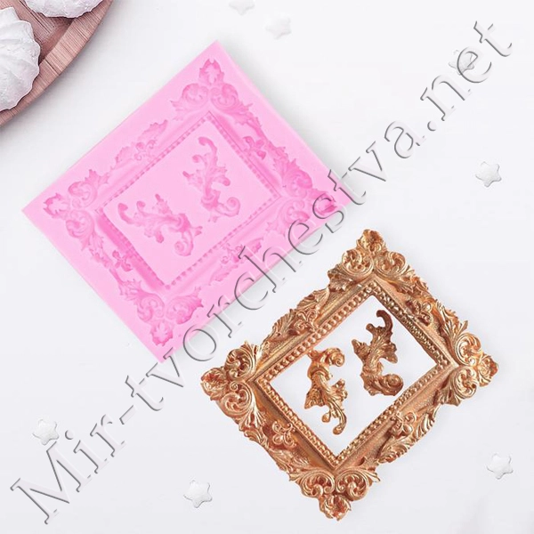 Молд силиконовый, 9,5х11,5х1,2 см "Рамка, лепнина", розовый 2818803