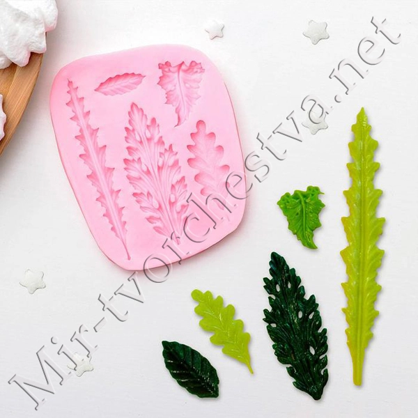 Молд силиконовый, "Листочки" 2 предмета 0,8х9х3,5 см 5180340